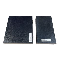 The high contrast and sophistication of black gets results in sales. The vibrant black velvet of the trays and cases in this popular line proves that impressive and effective displays need not be expensive. The items in this line include trays and cases for 12, 24, and 36 rings. Cases are wood, covered in textured black vinyl, with simply designed metal latches. Slotted black foam under the velvet inserts hold rings firmly in place. Covers are lined in black satin. Trays have decorative gold tooling around the edges.