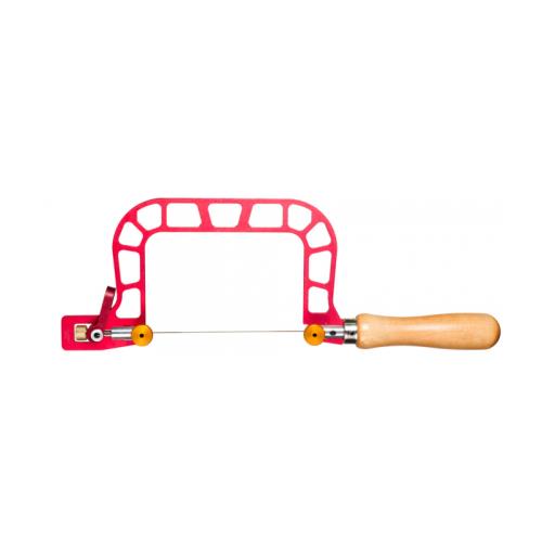 Designed to be exceptionally light and rigid, this saw frame provides precise control, reduced blade breakage, and virtually no flex. Best of all, the hardened aluminium frame weighs only 118 grams, more than 50 grams lighter than a comparable steel saw frame. It holds standard 5-1/8" jewellers’ saw blades. Its unique tensioning system makes mounting the saw blade simple and easy--without your having to wedge the handle against your chest to accomplish it. please note: This saw frame is precisely designed to hold saw blades that are 5-1/8" (130mm) long, the standard length of a jeweler's saw blade. Always check the length of any new saw blade before installing it; longer blades must be trimmed to this length, shorter blades will not work in this frame.