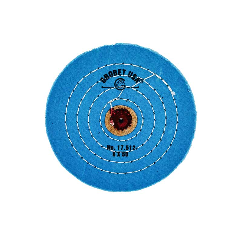 More aggressive and longer wearing than yellow and berry buffs. Chemically treated to be stiffer and more durable. Ideal for cutting and polishing platinum. Colour: Blue Diameter: 6" Ply: 50 Stitching: 4 Rows Center: Leather
