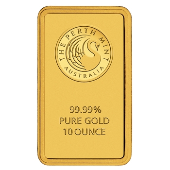 Fine Gold Bullion Minted Bars Gold Content: 10 Troy oz Minimum Weight: 311.07g Purity: 99.99% Dimensions: 47mm x 24mm x 17mm