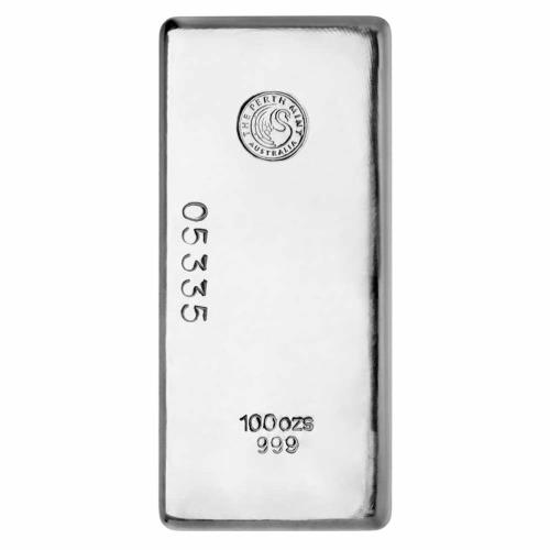 Perth Mint 100oz Fine Silver Extruded Bars Silver Content: 100 Troy oz Minimum Weight: 3112.00g Purity: 99.9% Dimensions: 144mm x 72mm x 30mm