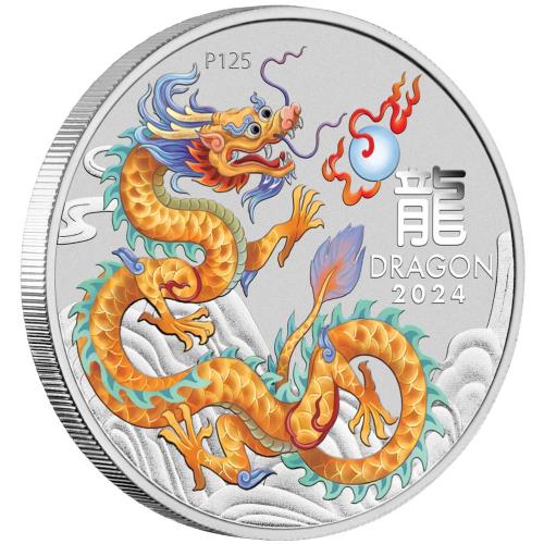 Fine Silver Coin 1oz Coloured Golden Dragon 2024 in Capsule