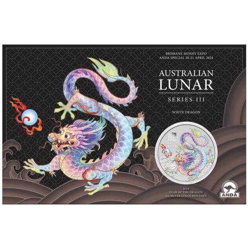 Fine Silver Coin Coloured White Dragon 2024 in Card