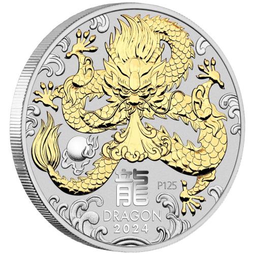 Fine Silver Coin Gilded Dragon 2024 1oz Coin & Cert Only