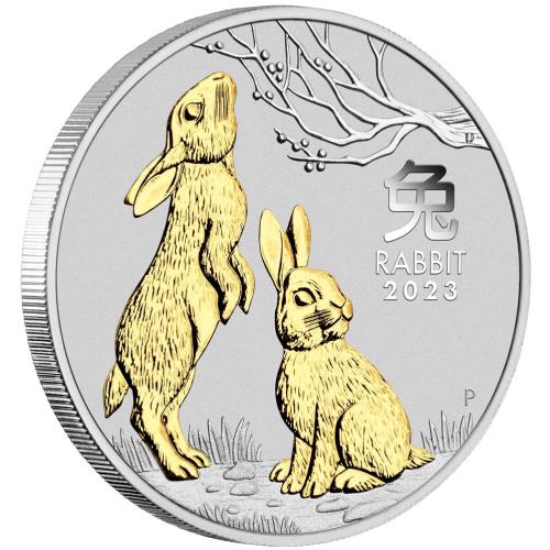 Fine Silver Coin Gilded Rabbit 2023 1oz Coin & Cert Only