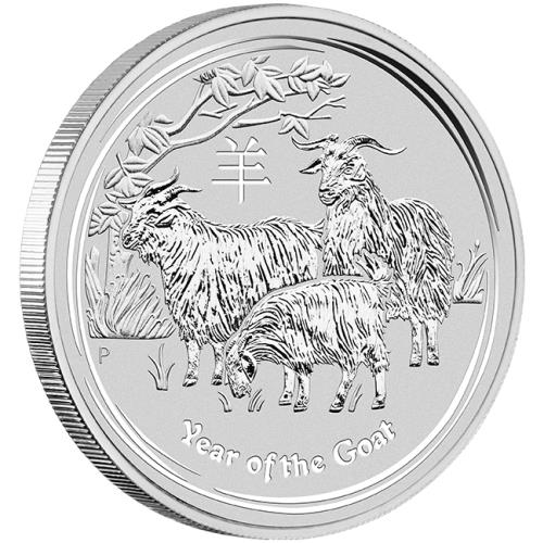 Fine Silver Lunar Coin Goat 2015 1kg Lunar Sign: Goat Year: 2015 Silver Content: 32.151 Troy oz Minimum Weight: 1001.002g Purity: 99.9% Denomination: $30 (AUD) Dimensions: 100.6mm x 14.6mm