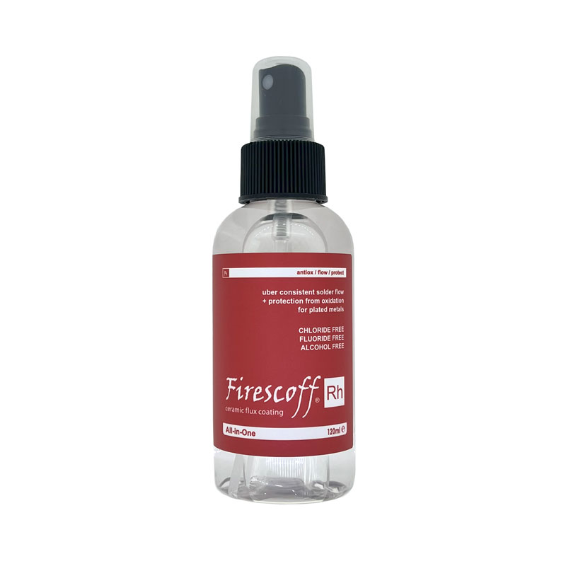 Completely water soluble, Firescoff eliminates the need for acid-based pickle solutions making it safer, faster and more cost-effective for all your soldering tasks. Simply spray it on, solder your piece, then rinse clean with warm water.