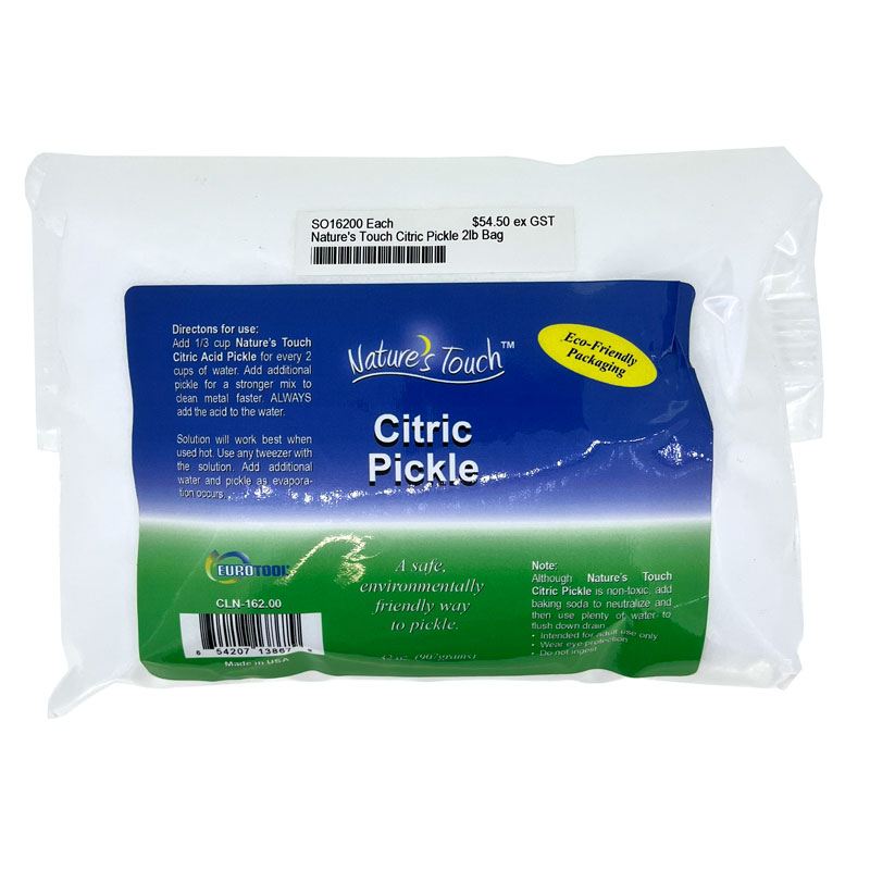 Nature's Touch Citric Acid Pickle is a mild pickling solution used for silver, gold, brass and copper. Also a great cleaner for stainless steel shot. This biodegradable pickle is a safe yet very effective alternative to standard pickling solutions.