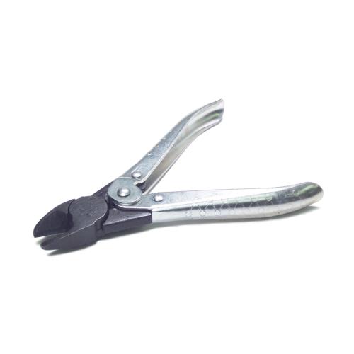 Has spring action handle. Cuts soft wire 5/32" (4mm), half hard wire 1/8" (3.175mm), 3/4 hard wire 5/64" (1.98mm) and piano wire 1/16". (1.59mm) Sprue Cutter, Spring return. Overall length: 5.5" Maximum jaw opening: 0.25".