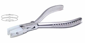 These flat nose pliers with two nylon jaws will not mar or scratch, and they provide a firm, secure grip on the work. One jaw is grooved for easily gripping rings or wire shanks. Overall length 5-1/2".