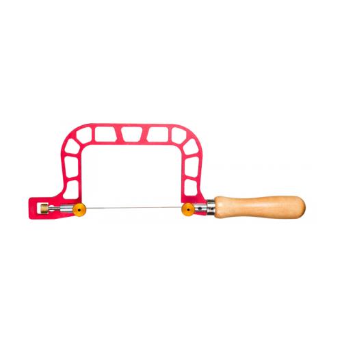 Designed to be exceptionally light and rigid, this saw frame provides precise control, reduced blade breakage, and virtually no flex. Best of all, the hardened aluminium frame weighs only 118 grams, more than 50 grams lighter than a comparable steel saw frame. It holds standard 5-1/8" jewellers’ saw blades. Its unique tensioning system makes mounting the saw blade simple and easy--without your having to wedge the handle against your chest to accomplish it.