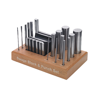 Kit Contains: Round Punch Size (mm): 24, 21, 18, 15, 11, 10, 7, 5, 3, 2 Square Punch Size (mm): 2x2, 3x3, 4x4, 5x5, 6x6 45° Diamond Shapes Punch Grooving Block 2½"