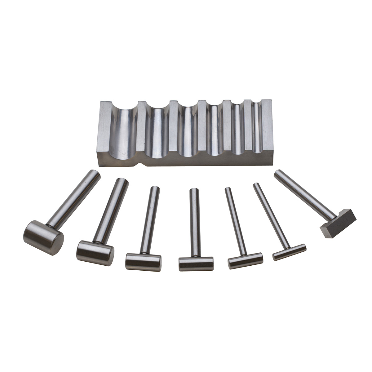 In hardened steel our 165 mm x 60mm U-Channel Steel Forming Block has six channels for working on large and small projects and a 90° V-groove on the bottom.
