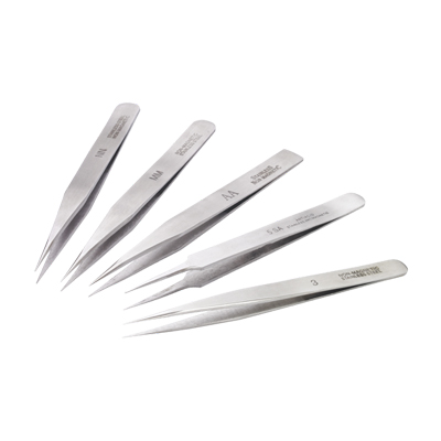 Soldering tweezers in 5 of the most popular shapes and sizes. Made from Stainless steel. Twezzers inculded: AA, MM, NN, 3 & 5