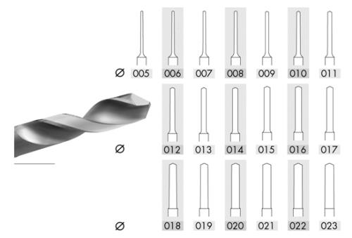 Tool steel cutter twist drill for machining soft precious metals and alloys. Stepped shank to allow for use in quick change handpieces with a 2.3mm collet size Diameter: 0.7mm Shaft diameter: 2.3mm