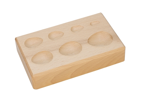 Made of hard wood to prevent scratching or marring, this sturdy forming block has seven oval depressions. Blocks measure 6.25" x 4" x 1.25.